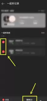 此时每条记录前都会出现勾选框,勾选想要删除的一起听歌记录,选择完毕后点击“删除”按钮,就能批量清理这些记录了。