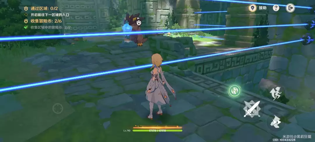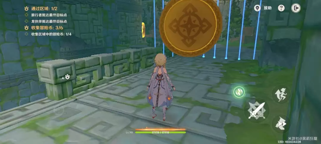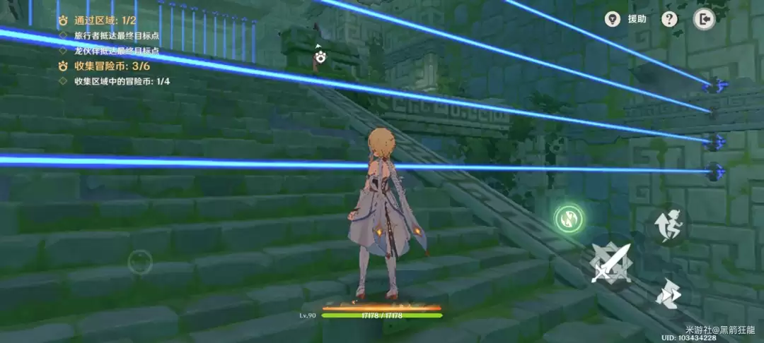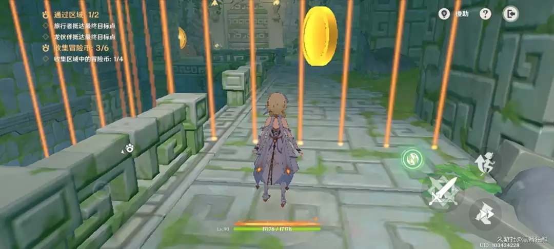 切回旅行者,取得第四枚金币,移至蓝色激光前。