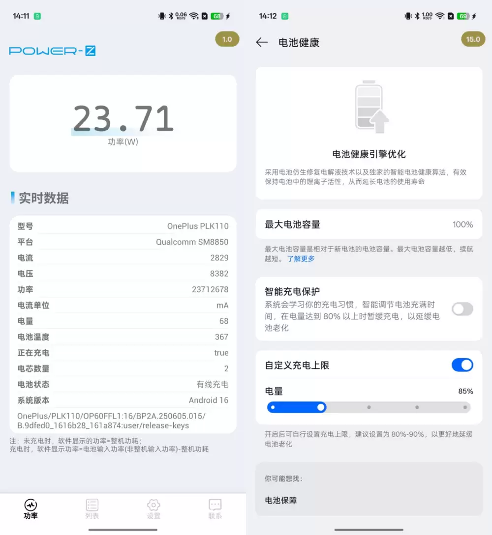 一加15本次将充电和续航完全拉满。首先是7300mAh的超大冰川电池采用新一代仿生球碳硅材料与X25双电芯架构,含硅量高达15%,实现814Wh/L的能量密度,更配备120W SUPER VOOC闪充,相比之前的100W充电速度提升40%的速度,并且加入更多的充电场景,比如喜欢使用无线充电的用户,也就是说无线有线都能实现充电自由。当然一加15的电池管理系统依然可以学习用户的使用习惯,或者自定义充电上限以达到保护电池的目的。