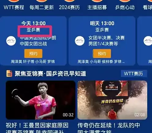 进入体育频道后,在赛事列表中选择【乒乓球】项目
