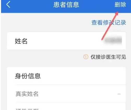 进入患者详细信息页后,点击底部的「删除」按钮。