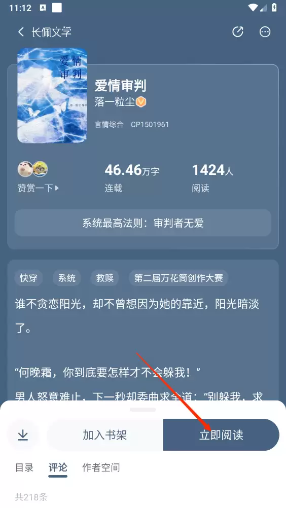 2. 进入小说详情页面后,轻触"立即阅读"按钮继续。
