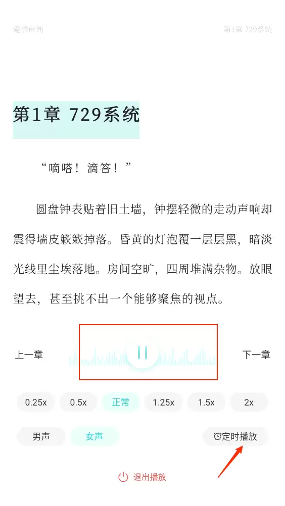 4. 如图所示,现在您就能享受听书功能了,还可以根据个人喜好设置定时关闭、调整语速等个性化选项。