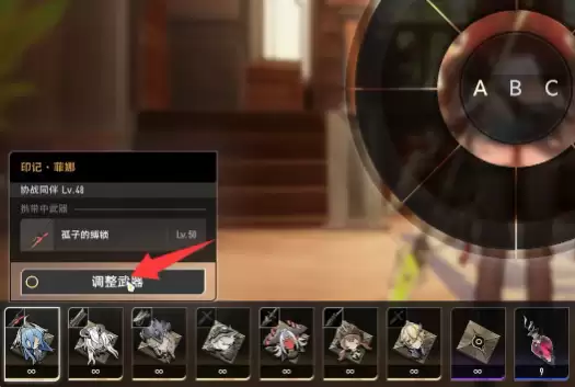 实际上在游戏中我们可以切换的是主线章节,而不是直接更换角色。不过玩家在游戏过程中可以随时召唤协战角色。想要切换角色的话,只需进入主界面的准备按钮,进入之后先别急着调整装备,记得先看看右侧的战术背包——这里就是设置协战角色的关键入口。进入该界面后,左下角会显示当前拥有的所有角色印记,比如塔比瑟都会出现在这里。选择要携带的角色之后,需要给这个角色配备合适的武器,建议选择一个近战武器和一个远程武器,优先考虑该角色擅长的武器类型。配好武器后别急着退出,还需要安装一个魔之楔,这个道具可以快速提升角色的战斗力。