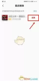 进入“最近删除”页面后,你就能看到最近被删除的作品啦。找到你想要恢复的作品,点击作品封面下方的“恢复”按钮。这样,该作品就会被恢复到原来的位置,重新出现在你的作品列表中。