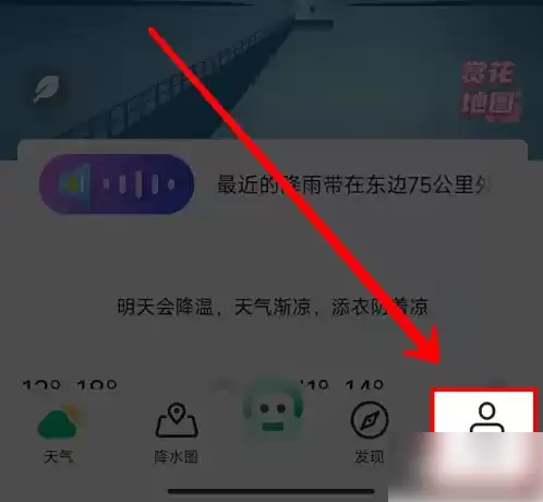 启动彩云天气APP后,轻触右下角的【我的】入口。