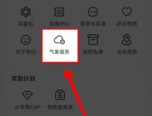 进入个人中心界面,找到并点击【气象服务】选项。