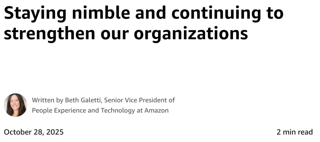 亚马逊高级副总裁贝丝·加莱蒂在信中遗憾地宣布,公司将启动新一轮裁员——在35万名全职员工中,约有4%的同事需要准备离职。