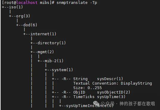 这串数字实际上对应MIB树上的路径位置,可通过命令查看如下: