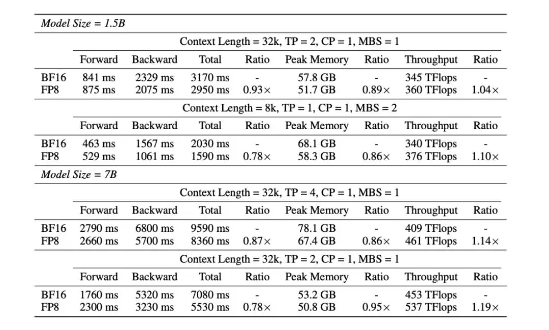 △ 显存占⽤、计算延迟与系统吞吐量测试结果。相较于 FP16/BF16,InfiR2 FP8 将端到端训练速度最高提升了 22%,显存峰值最高节省了 14%,端到端吞吐量最高提升了 19%。图源:企业供图
