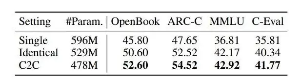 为确保泛化能力,团队在通用微调语料库 OpenHermes2.5 [14] 中选取前 50 万个样本来训练 C2C Fusers。