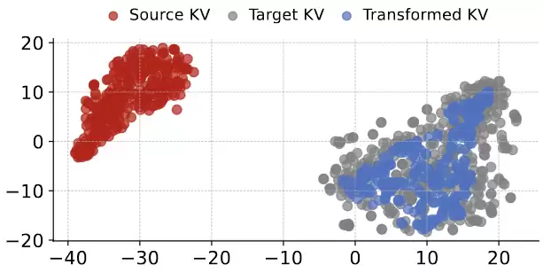 源模型、目标模型以及转换后KV-Cache的t-SNE图