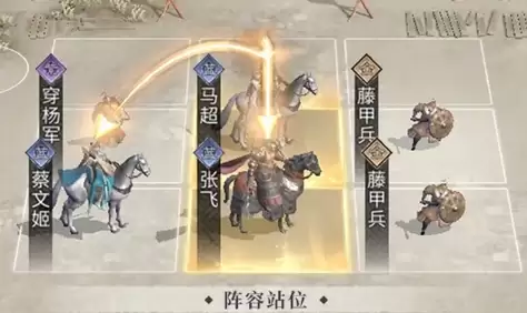 站位安排:务必将马超放置在与张飞、蔡文姬的追击格相邻位置上,形成以马超为核心的阵容布局。同时,盾兵应布置在前排,弓箭手等输出兵种则安排在后方。