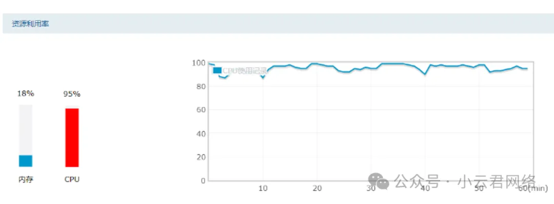某酒店使用的联通800M专线在夜间客户入住后出现流量满载,客人普遍反映网络卡顿无法正常使用,通过路由器检测发现CPU持续处于90%的高负载异常状态。