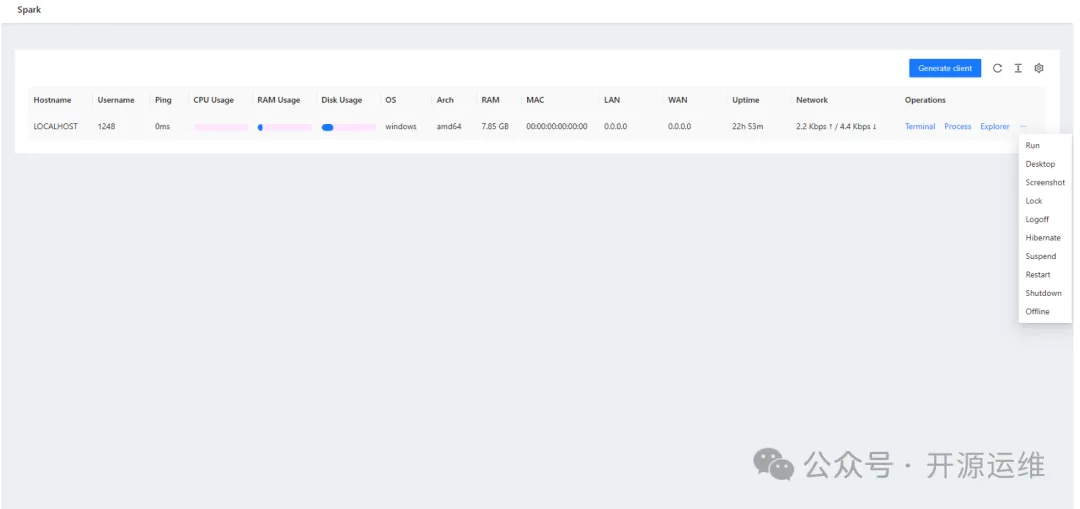 Spark 项目精准解决了这些痛点:轻量化操作、近乎全能的远程控制功能,甚至是多设备实时管理,让您的运维工作井井有条,效率直接拉满!