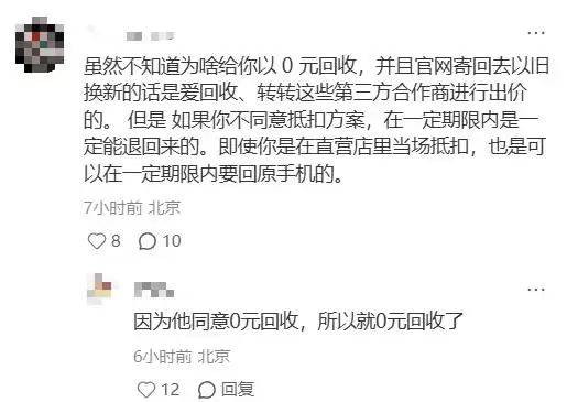 对此,评论区有经验人士提醒道:“如果不同意最终的折抵方案,其实在规定期限内是可以申请退回旧机的。即便是在直营店当场折抵,也有权在一定时限内要回原手机。”