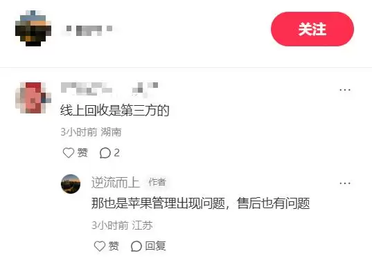 同时,也有评论指出,“线上回收业务其实是由第三方合作方负责处理的。”