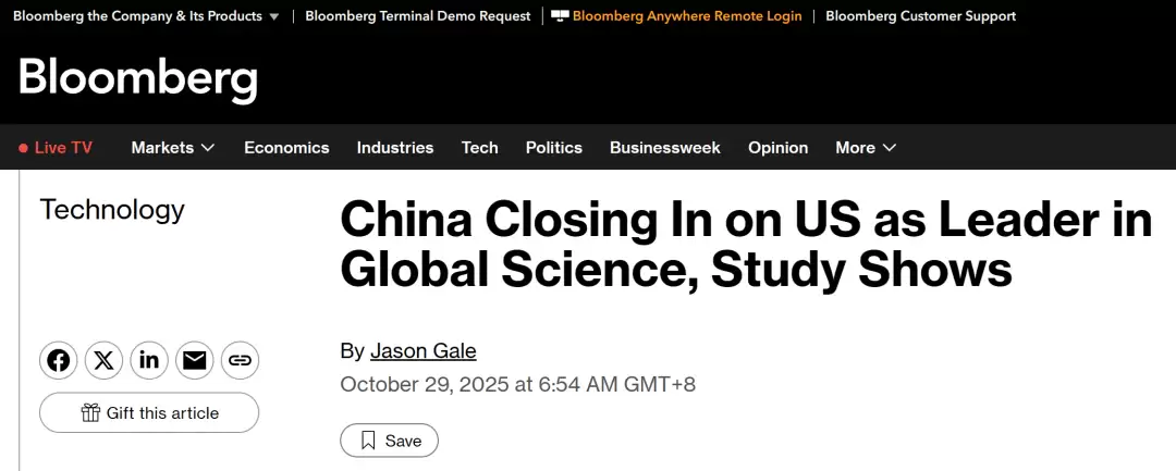 值得注意的是,经彭博社报道后,国际舆论出现有趣分化:有人直言"西方科学毋庸置疑的主导时代即将终结"。
