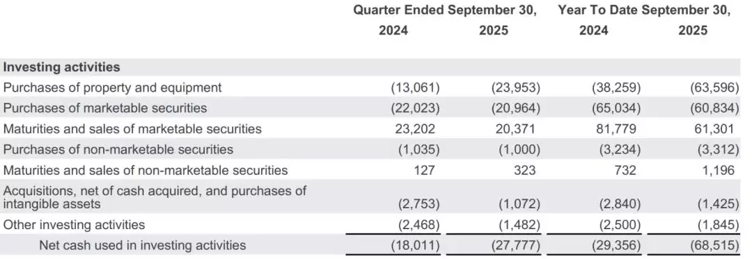 支出方面,第三季度的资本支出达239.5亿美元,全年预计支出为910-930亿美元,较去年显著增长,主要用于投资AI算力基础设施建设。