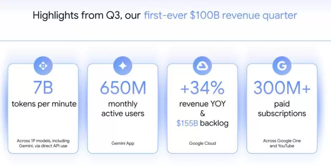 在AI业务的强劲驱动下,谷歌季度营收首次突破千亿美元大关,交出了一份创纪录的亮眼成绩单。