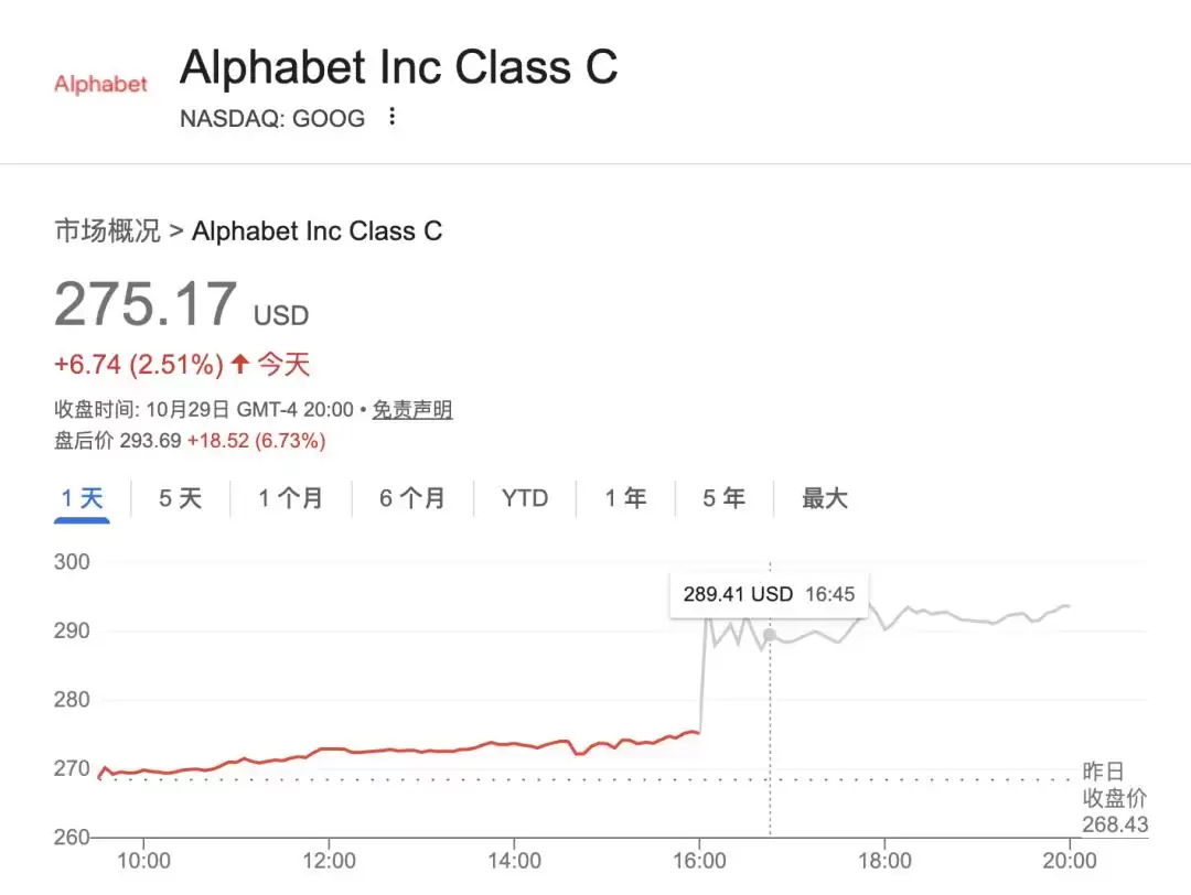财报发布后,谷歌股价在盘后交易中猛涨,达到每股293.69美元。据此计算,公司市值已达3.55万亿美元,单日增长超过3000万美元(约合2.1亿元人民币)。