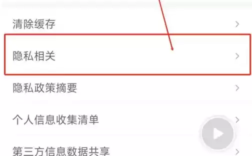 进入设置页面后,选择"隐私相关"功能