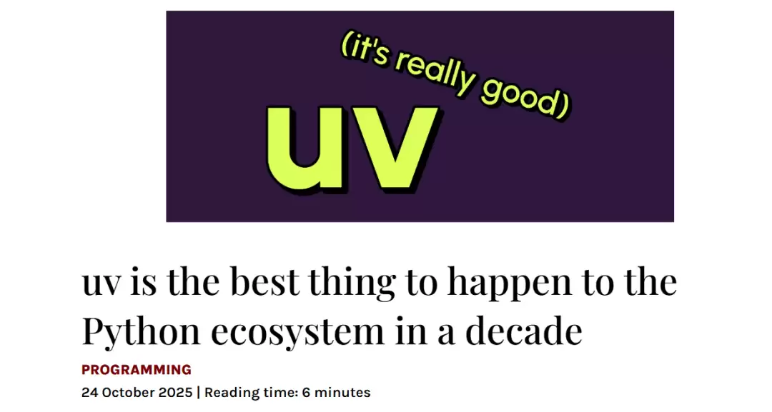 接下来,我们就来看看为什么说"uv是近十年来Python生态系统发生的最好的事情"。