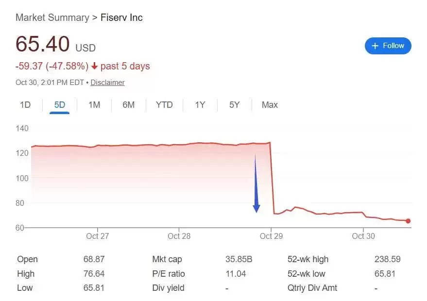 Jefferies分析师Trevor Williams认为,Fiserv的指引下调幅度“令人难以理解”。Truist Financial分析师Matthew Coad表示:“坦率地说,我们很难回忆起我们所覆盖的任何子行业中,出现过如此严重的业绩不及预期和指引下调。”