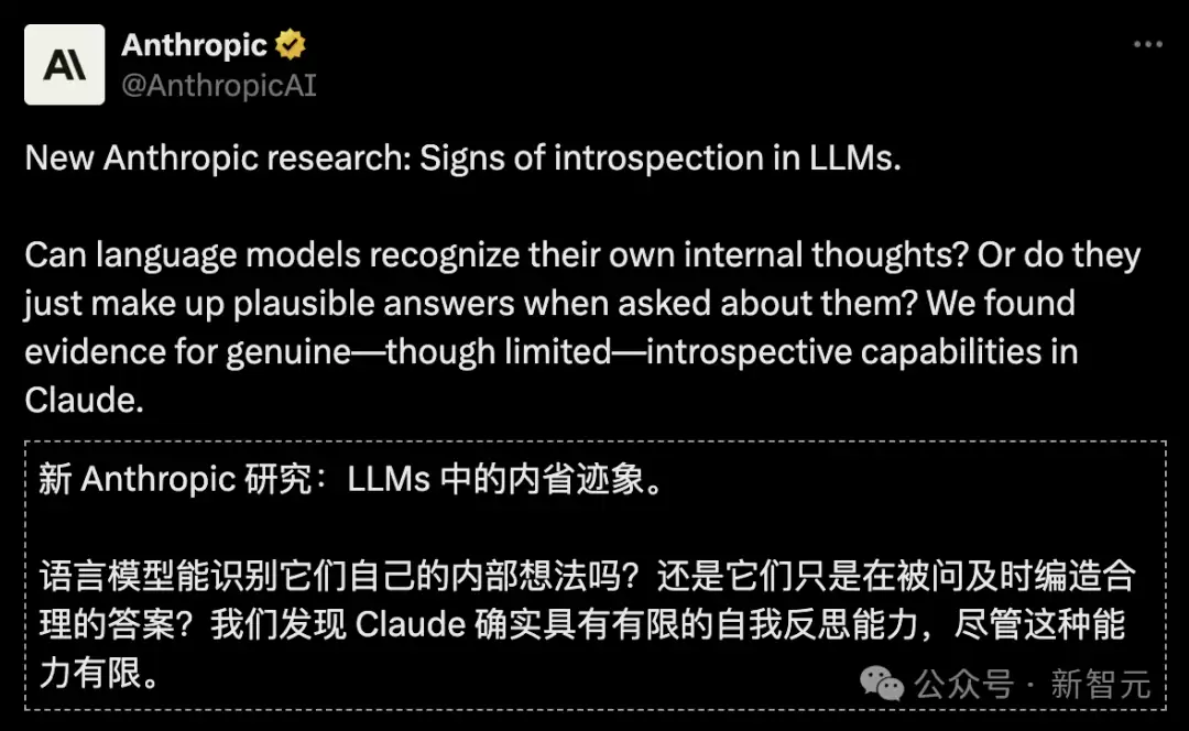 Anthropic的新研究证实,当前Claude模型已具备某种程度的内省意识,并能对自身内部状态进行一定控制。
