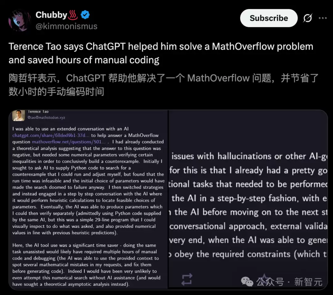 一直以来,陶哲轩既是“AI+数学”领域应用的坚定支持者,也是最佳实践的探索者。