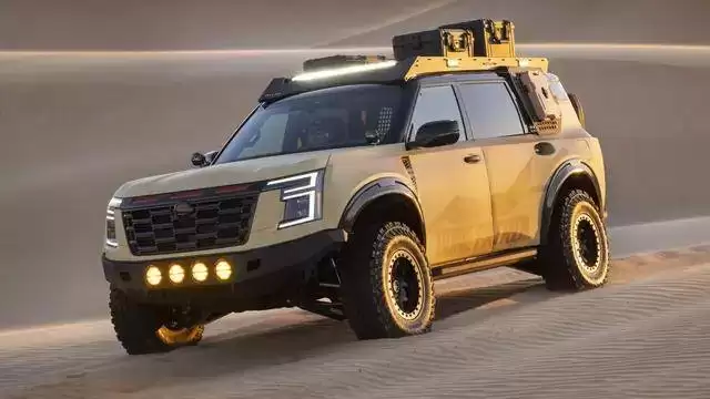 其中,日产Dune Patrol以Armada Pro-4X为基础,被定义为"极致越野赛事的超舒适支援车辆"。这款车搭载了Nismo Off Road专业套件,配备18英寸Nismo防脱轮毂与37英寸泥地轮胎,配合长行程赛车悬挂,确保在复杂地形中的稳定性。车身设计方面,加宽的翼子板、钢制保险杠及多组辅助LED灯,不仅提升了视觉冲击力,更在夜间沙丘越野时提供充足照明。车顶行李架与车内外的储物系统,可满足越野团队携带各类装备的需求。