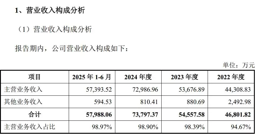 好盈科技的营收增长轨迹令人瞩目。招股书显示,2024年至2025年上半年,公司营业收入从46,801.82万元快速增长至57,988.06万元(半年),2024年全年达到73,797.37万元,较2023年的54,557.58万元增长35.3%。这种持续的高增长态势在制造业中并不多见。