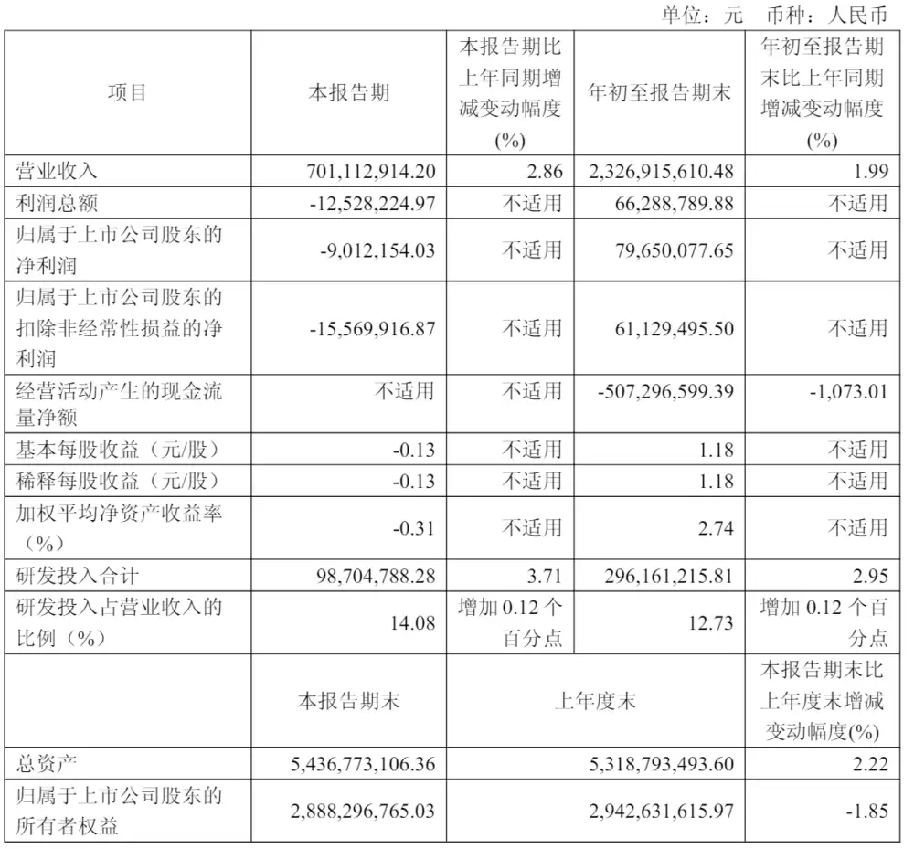 不过,2025年第三季度公司营收为7亿元,归属于上市公司股东的净利润出现901万元亏损,扣非后净亏损扩大至1557万元。