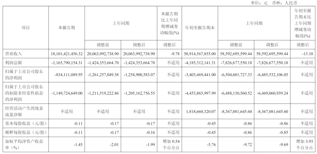 2025年第三季度,隆基绿能营收为181亿元,较上年同期的200.6亿元下降9.78%;归属于上市公司股东的净亏损为8.34亿元,上年同期为12.55亿元;扣非后净亏损为11.5亿元,上年同期则为12亿元。
