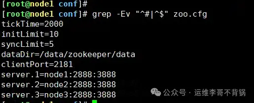 # 进入配置文件目录cd /data/apache-zookeeper-3.8.4-bin/conf# 复制参考配置文件cp zoo_sample.cfg zoo.cfg# 修改配置文件,主要修改下面两项dataDir=/data/zookeeper/dataserver.1=node1:2888:3888server.2=node2:2888:3888server.3=node3:2888:3888