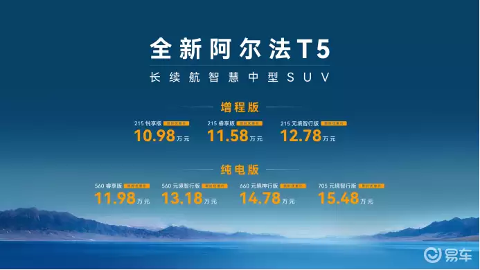 阿尔法T5正式上市,10.98万起配豪华配置,重塑15万级SUV标杆