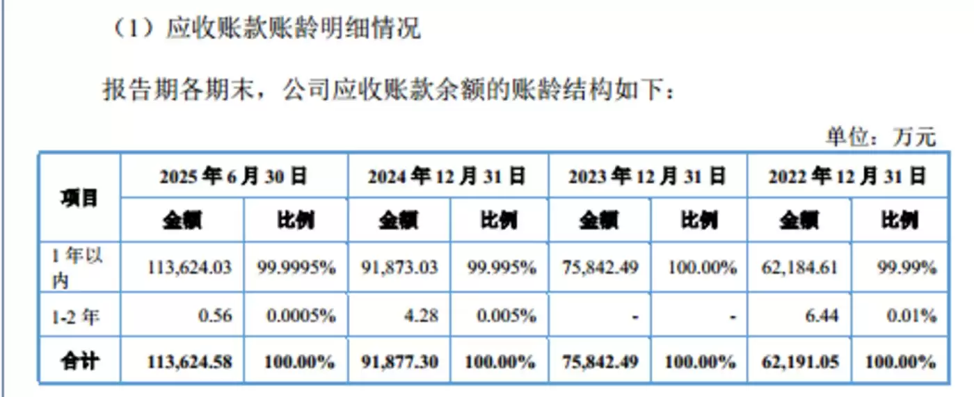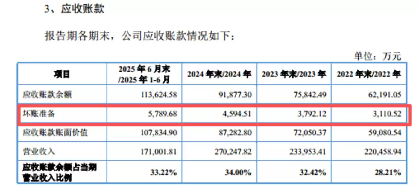 红板科技业绩亮眼的同时,应收账款余额也持续高增。截至2024年末、2024年末、2024年末、2025年6月末,红板科技应收账款余额分别为62191.05万元、75842.49万元、91877.3万元、113624.58万元,规模持续扩大,2024-2024年的年均复合增长率达21.55%,显著高于同期10.72%的营收增速。
