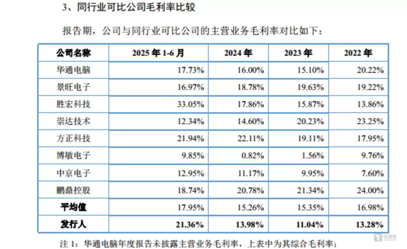 我们注意到,这一时期公司毛利率的变化确实关键。报告期内,红板科技的毛利率分别为13.28%、11.04%、13.98%、21.36%,同行业可比公司平均值分别为16.98%、15.35%、15.26%、17.95%。可见,红板科技的毛利率在始终低于同行均值的情况下,到了2025年上半年一举反超了行业平均水平。