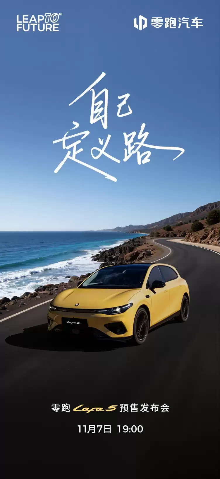 进入11月,零跑还将迎来一款诠释全新个性战略的新品——Lafa5。这款定位为“高颜值运动轿跑”的车型,专为泛95后年轻乐活群体打造,以超高颜值与愉悦驾控为核心亮点,将开启零跑产品矩阵年轻化的新篇章。11月7日,Lafa5预售发布会将正式揭晓其产品魅力与极具竞争力的预售政策。