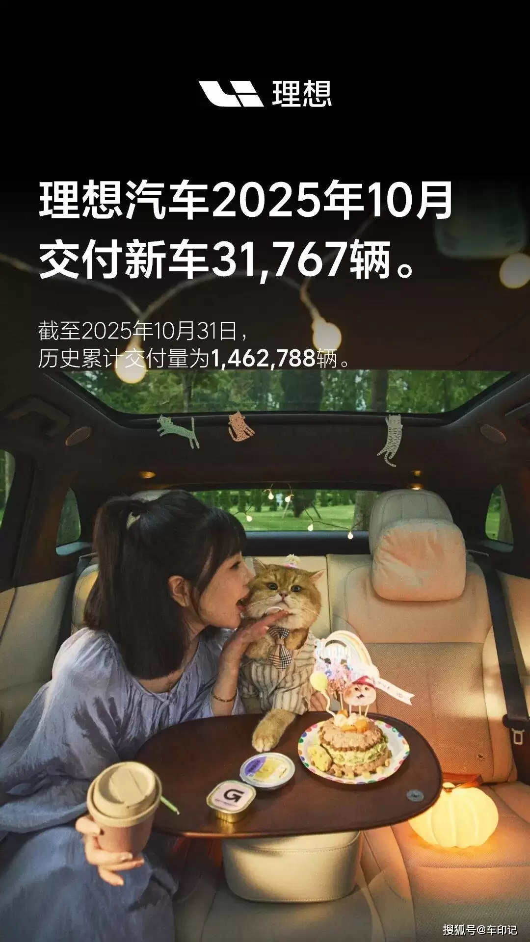 理想汽车2025年10月交付31767辆,累计已突破146万辆