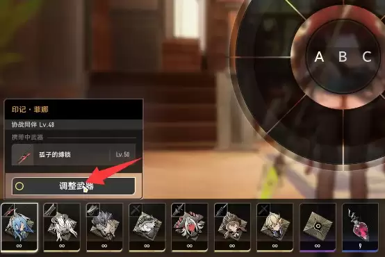 此处要特别强调的是魔之楔系统,在武器配置界面中可以为武器装配魔之楔,从而显著提升战斗效能。玩家还可以配置多套不同角色方案,方便在实际对战中根据战况灵活切换。完成设置后即可召唤队友,在单人作战时突然多出两位AI伙伴,确实会带来满满的安全感。最后推荐两位实用的伙伴:首选辅助型角色天花版菲娜,其核心技能可快速切换四种不同属性。长按技能键还能提前结束领域效果,这一机制往往能制造更高的伤害输出。