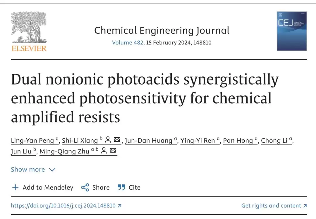 今年4月,湖北九峰山实验室与华中科技大学的联合研究团队成功突破了“双非离子型光酸协同增强响应的化学放大光刻胶”技术。
