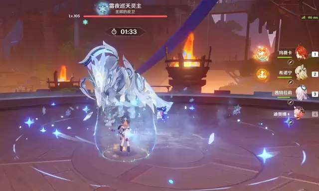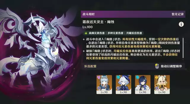而伊涅芙由于没有满辉技能,伤害过低,灰色血条积蓄就不够明显。当然,如果你没有娜芙尔或菲林斯这类角色,也可以选择其他高输出队伍,比如冰水战舰、纳塔战舰、枫丹战舰等等。只要总体伤害足够,同样具备一战之力。