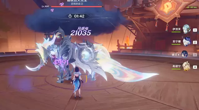 第二关的首领是狂猎,早在6.0版本我们就已经交过手,它来自大世界地方传奇区域。这个Boss最显著的特点就是——丰饶之物,跑起来真的很像原神!