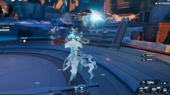 扶疏是水系阵营中极具辨识度的治疗型辅助角色。她的外观设计融合了东方古典美学与机械元素,手持经过特殊改造的突击步枪。作为精通突击枪的战术型角色,她的攻击动作精准而克制,每一次扣动扳机都伴随着细微的水纹特效。子弹命中敌人时会漾起浅蓝色水花,而非传统的硝烟效果,从视觉上强化了水元素的属性特征。扶疏的战术核心围绕“云璃”这一独特的治疗单位展开。发动主动技能“浮沉释”时,她会从突击步枪枪口喷出两道凝结的水元素能量,落地后化作半透明的蓝色晶体状云璃,持续为周围队友输送生命值。