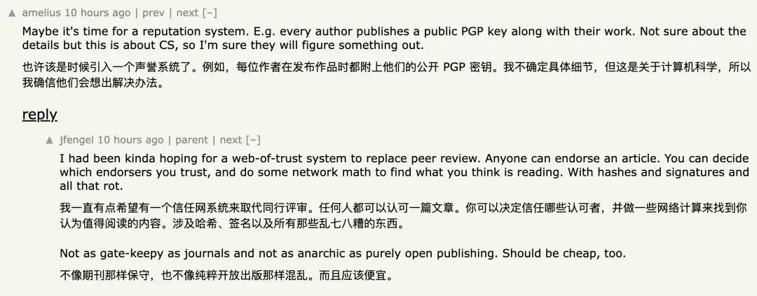 基于此,有人建议建立一个信任系统,任何人都能给文章「背书」,读者自己去读那些信得过的人推荐的内容。不过这种方法的可行性仍有待讨论。