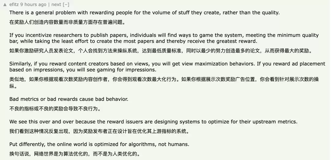 还有人从源头入手,深入分析了「AI 论文」泛滥的原因——如果我们的奖励机制一直鼓励大家去写更多的论文,那所有人都会往这个方向发力,低质论文自然越来越多。这确实不能全怪 AI。