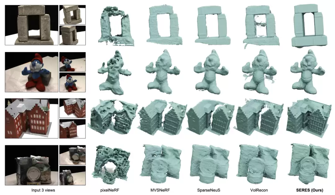 SERES将跨视角的语义一致性与结构层面的区域约束,转化为一种低成本、可解释、可复用的训练先验。它以即插即用的方式接入现有的隐式重建框架,不需要额外传感器或复杂改造,即便在很少的视角下,也能恢复边界清晰、结构完整、细节可靠的表面。面对更大规模场景、更复杂材质与光照等现实挑战,这一思路仍有充分拓展空间。对工程师和研究人员而言,SERES的接口简单、迁移门槛低、真实场景友好,适合直接集成到当前的三维重建工作流中,用更少的视角获得更高保真的几何重建。