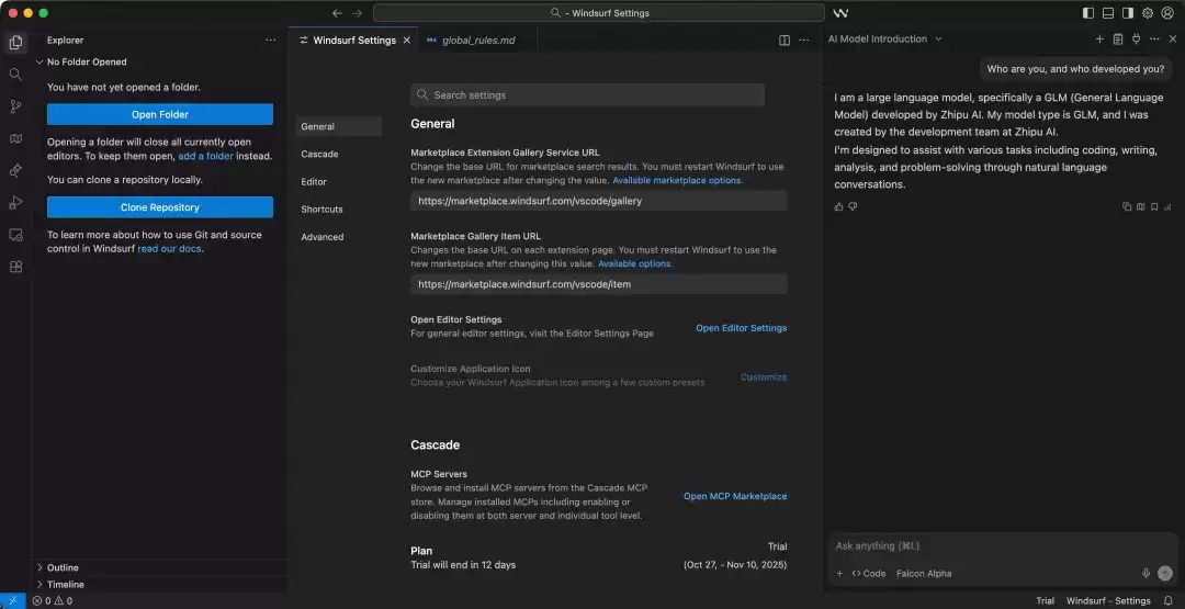 Windsurf这边,更是被用户直接套话,"自曝身份":我是由智谱开发的GLM。