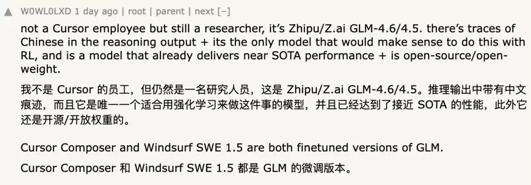但在Hacker News上,有人直接点破:Cursor和Windsurf新模型背后都采用了智谱的GLM。